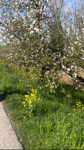 Aangekomen bij de Hoenderik werd de boomgaard verkend en even genoten van al het moois. Weer op weg langs een prachtige bloeiende weg naar onze laatste stop; de RustWat aan de Linge in Rhenoy voor een drankje of een ijscoupe.