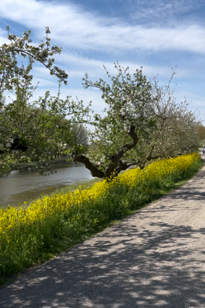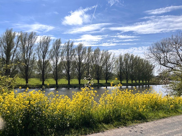Na de koffie fietsten wij over een prachtige route langs de slingerende Linge. De bloesem van de perenboomgaarden was net uit, maar de bloesem van alle andere bloeiende bomen was van een overweldigende schoonheid! Aangekomen bij de Marienwaerdt stond de gedekte tafel als op ons te wachten en na een heerlijke lunch gingen we verder op onze route! Een mooie molen was een plek voor een groepsfoto en zo gedaan! Het was een drukte van belang met alle andere fietsers onderweg die ook genoten van deze mooie dag!